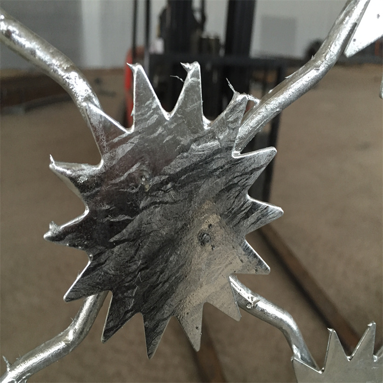 監獄梅花刺隔離網網片整體熱鍍鋅,上鋅量不低于300克,可做霧化試驗,鋅層要求使用不低于10年。