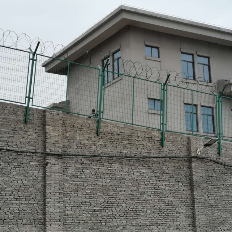 5、獄墻頂部防護網在施工時,獄墻每間隔25米進行拉桿支撐網墻拐角處和分段處的兩根立柱應預制連體構件。