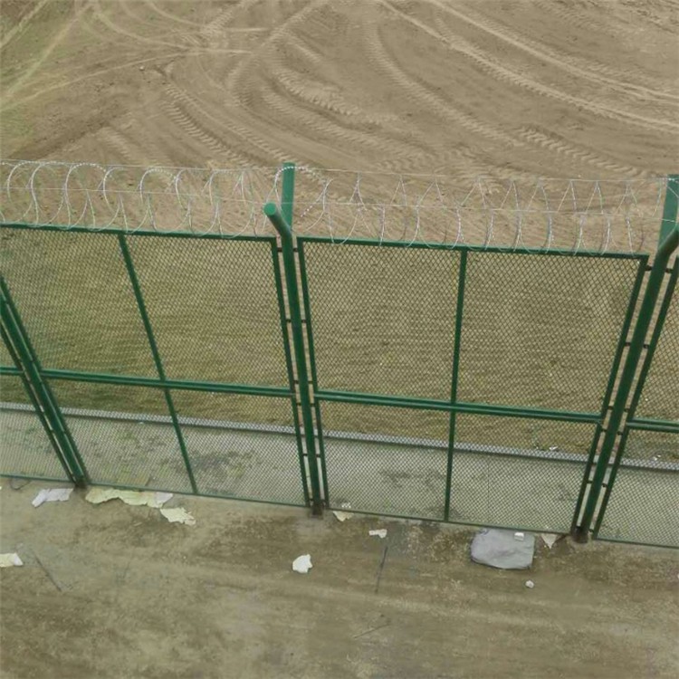 監(jiān)獄封閉式隔離網(wǎng)又稱作監(jiān)獄護(hù)欄網(wǎng)“Y型安全防御護(hù)網(wǎng)”監(jiān)獄鋼網(wǎng)墻、金屬鋼網(wǎng)墻,是由V型支架立柱,加強(qiáng)型焊接片網(wǎng),安全防盜連接件和熱鍍鋅刀片刺籠組成強(qiáng)度和安全防御性級別很高。近年來,被應(yīng)用在監(jiān)獄,軍事基地等高安全場所。注:如果在監(jiān)獄護(hù)欄網(wǎng)頂部加裝刀片刺絲、刀片刺繩后,很好的增強(qiáng)了安全防護(hù)性能。采用電鏡、熱鏡、噴塑、浸塑等防南形式,具有很好的、抗曬、耐候等特點、其產(chǎn)品浩型美觀,龍色多樣。既起到用術(shù)作用,又起到美化作用。由于具有安全性高、防攀爬能力好,有效防止人為的破壞性拆卸,橫向四道折彎加強(qiáng)筋,使網(wǎng)面強(qiáng)度顯著增加。