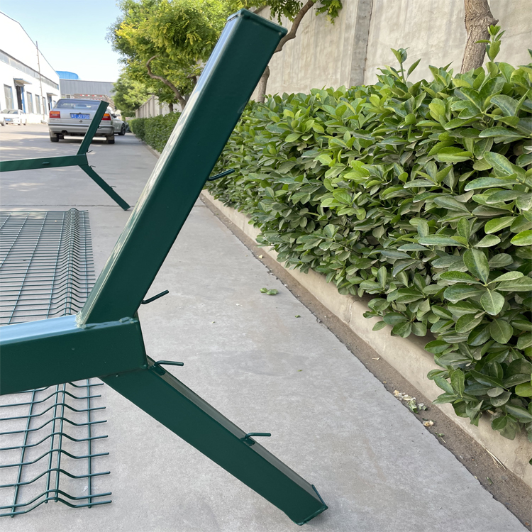 機(jī)場外圍防御鋼網(wǎng)墻首先是廠家與客戶相互溝通好每一個(gè)詳細(xì)參數(shù)之后,開始采購原材料進(jìn)廠,工人根據(jù)相應(yīng)的圖紙下料生產(chǎn),做好焊接好的模具,然后就是焊接成品,一般機(jī)場圍界的外框?yàn)榻氰F外框,外框規(guī)格為:50*50*5mm的鍍鋅角鐵,中間絲徑為5mm,網(wǎng)孔為50*100mm。立柱為60*80的方管上方加Y型立柱。焊接好之后下一步就是打磨,工人經(jīng)過自己的打磨在浸塑,使機(jī)場防護(hù)網(wǎng)表面光滑沒有焊點(diǎn)凸起。下一步就是浸塑流程,把焊接好的機(jī)場防御網(wǎng)放入高溫加熱的庫房,加熱到一定的溫度之后,然后進(jìn)行熱浸塑。下一步對熱浸塑好的機(jī)場護(hù)欄網(wǎng)進(jìn)行流光處理,每一套出來的護(hù)欄都有光滑的表面,美觀實(shí)用。