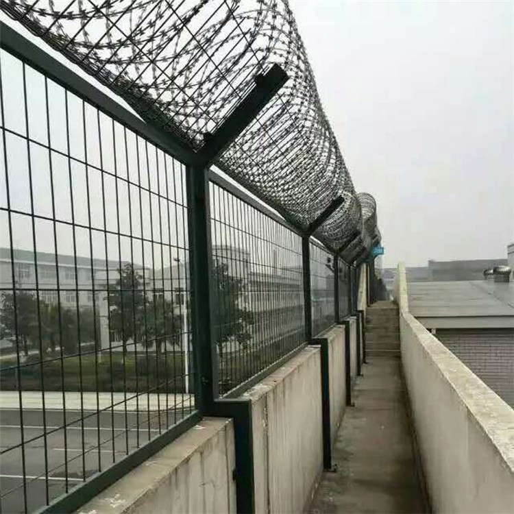 監獄內需要安裝監獄鋼網墻的幾個地方包括巡邏道、內監墻、外監墻和放風場。在圍墻上的應用,鋼網墻的高度通常設置為1.5至2米左右。由于圍墻本身已經起到了隔離作用,加高圍墻只是為了進一步防止攀爬。