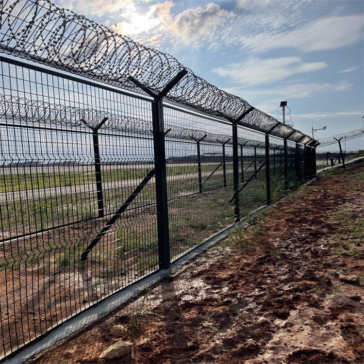 此外,機場圍界的立柱和框架的質量以及護欄的立柱和框架也是一個相對被忽視的領域。配備刀片式刺絲和刀片式刺繩后,機場護欄網(wǎng)的安全防護性能得到了很好的提高。