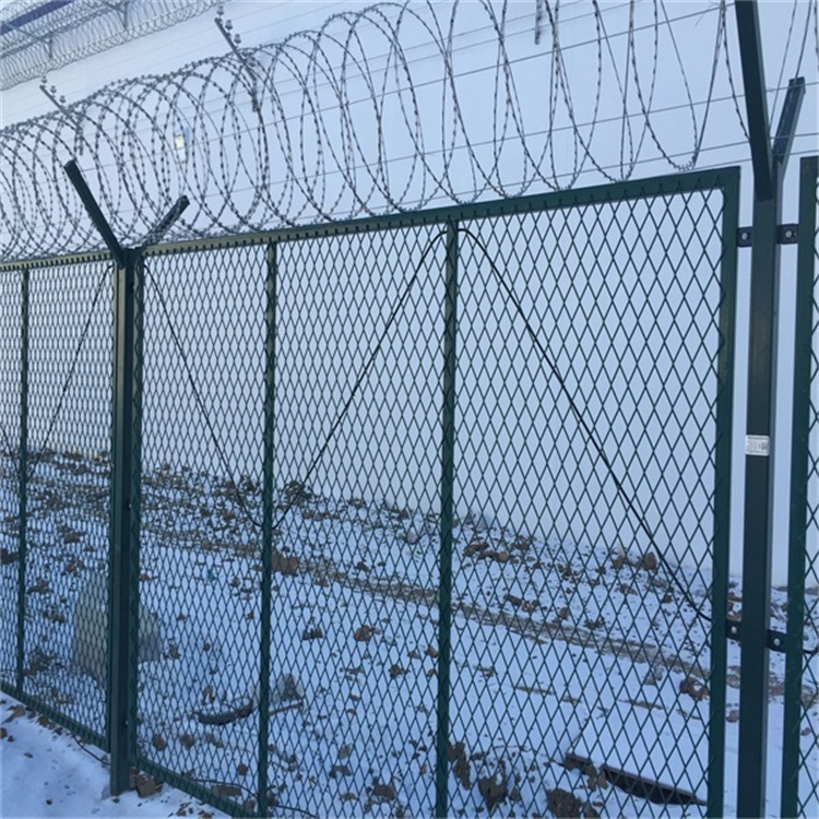阻隔網又被稱作看守所圍欄阻隔網是一種專門用于監獄外圍的安全防護運用的阻隔柵商品。阻隔網用國產優級低碳鋼絲或鋁鎂合金絲經噴塑編焊而成,網格構造簡練、便于運輸、裝置不受地勢崎嶇約束,特別是關于山地、坡地、多彎地帶適應性強。阻隔網商品堅固耐用、價格中等偏低,適合大面積選用。阻隔網能夠用于機場、公路、鐵路、橋梁兩側的阻隔與防護使、機場、港口、碼頭的安全防護、市政建設中的公園、草坪、動物園、池湖、路途、住宅區的阻隔與防護、賓館、酒店、超市、公共場所的防護與裝飾等。又稱作.機場阻隔網、Y型安全防護阻隔網”,阻隔網是由V型支架立拄,加強型焊接片網的防護產品。