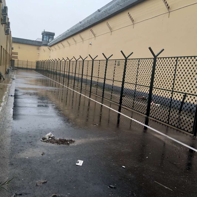 監獄梅花刺片隔離網立柱采用Y型鍍鋅鋼管、Y型立柱安裝不銹鋼刀片刺網,整體梅花監獄護欄網表面墨綠色噴涂、也常用銀灰色噴涂、高端大氣、既起到防腐防銹的作用、又有裝飾的效果。