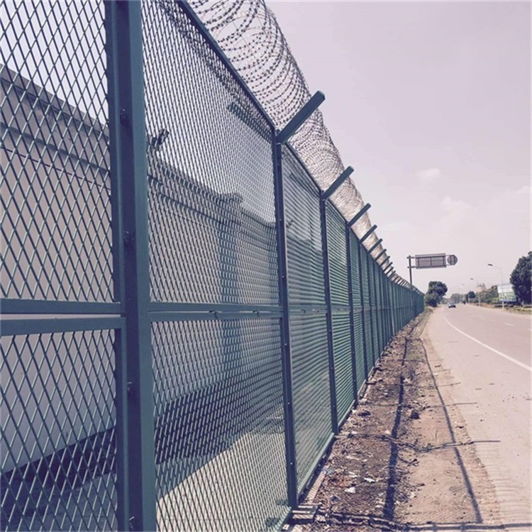 監(jiān)獄護欄網(wǎng)又稱作"Y型安全防御護網(wǎng)"和機場護欄網(wǎng)通用,是由V型支架立柱,加強型焊接片網(wǎng),安全防盜連接件和熱鍍鋅刀片刺籠組成強度和安全防御性級別很高。近年來,被廣泛應用在監(jiān)獄,軍事基地等高安全場所。注:如果在監(jiān)獄護欄網(wǎng)頂部加裝刀片刺絲、刀片刺繩后又很好的增強了安全防護性能。采用電鍍、熱鍍、噴塑、浸塑等防腐形式,具有很好的抗老化、抗曬、耐候等特點。其產(chǎn)品造型美觀、花色多樣,既起到圍欄作用,又起到美化作用。由于具有安全性高、防攀爬能力好,網(wǎng)片連接方式采用特制SBS緊扣件,有效防止人為的破壞性拆卸,橫向四道折彎加強筋,使網(wǎng)面強度顯著增加。