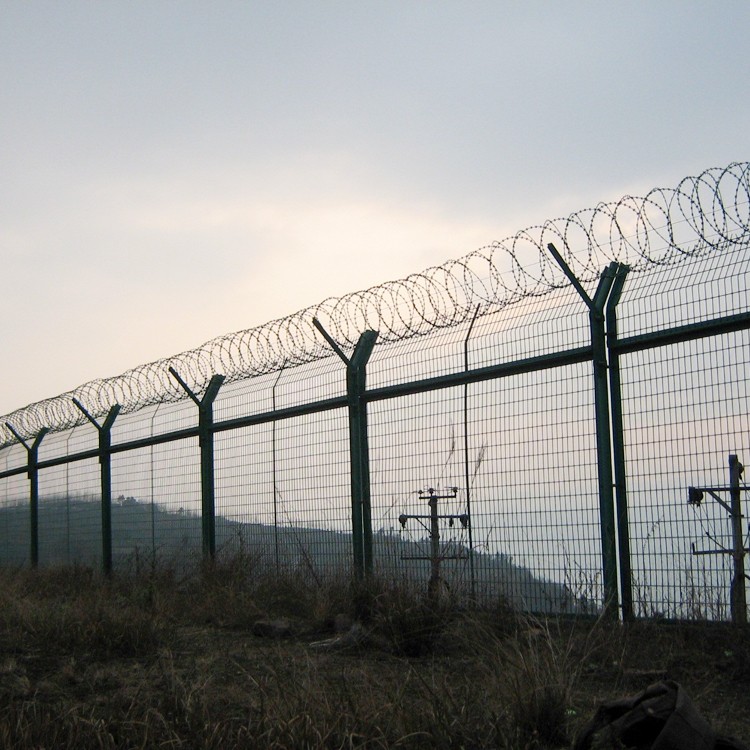 機場圍欄鐵絲網(wǎng)作為封閉圍墻的安全屏障,他的主要作用就是防止人翻越。機場圍欄網(wǎng)的防腐處理工藝是:除銹+防腐+浸塑。我廠對機場圍欄網(wǎng)的質(zhì)量要求是立柱及邊框浸塑處理,使用專門]的PVC塑粉,表面做到無針孔、開裂、漏塑、塑液流淌等不良現(xiàn)象;顏色為草綠色、墨綠色、白色、灰色等。